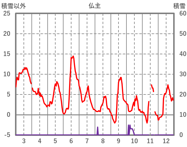 | 日 | 時 | 気温 | 降水 | 風向/風速 | 日照 | 積雪 | 降雪 |