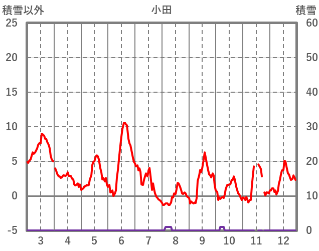 | 日 | 時 | 気温 | 降水 | 風向/風速 | 日照 | 積雪 | 降雪 |