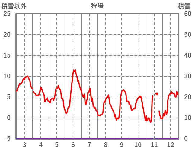 | 日 | 時 | 気温 | 降水 | 風向/風速 | 日照 | 積雪 | 降雪 |
