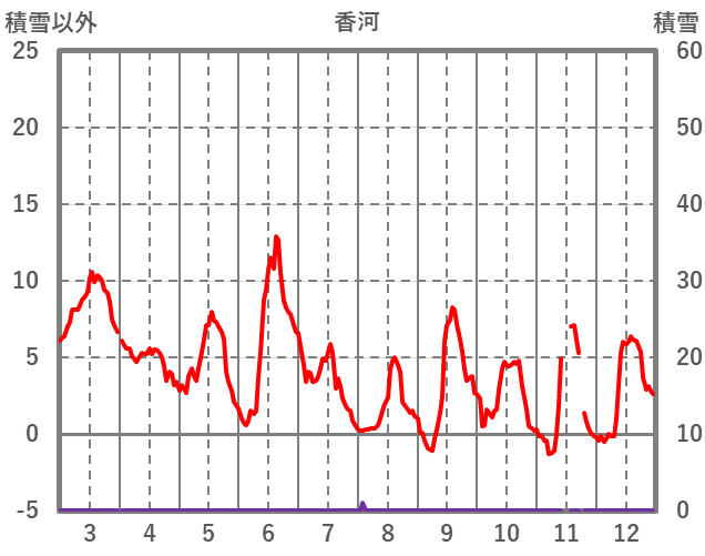 | 日 | 時 | 気温 | 降水 | 風向/風速 | 日照 | 積雪 | 降雪 |