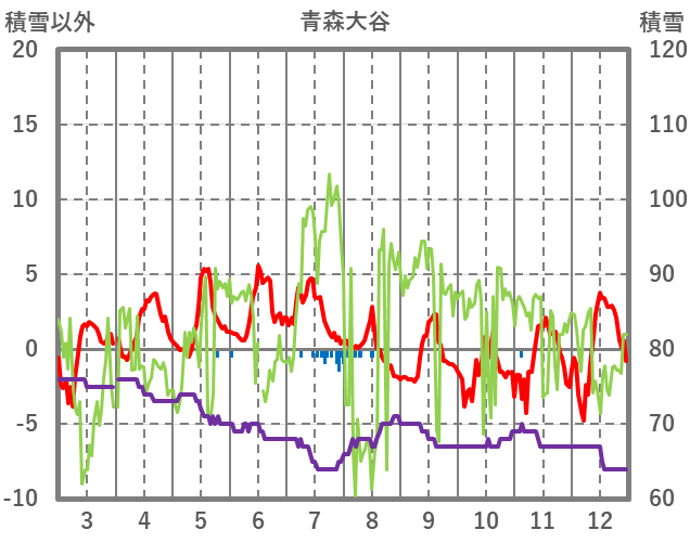 | 日 | 時 | 気温 | 降水 | 風向/風速 | 日照 | 積雪 | 降雪 |