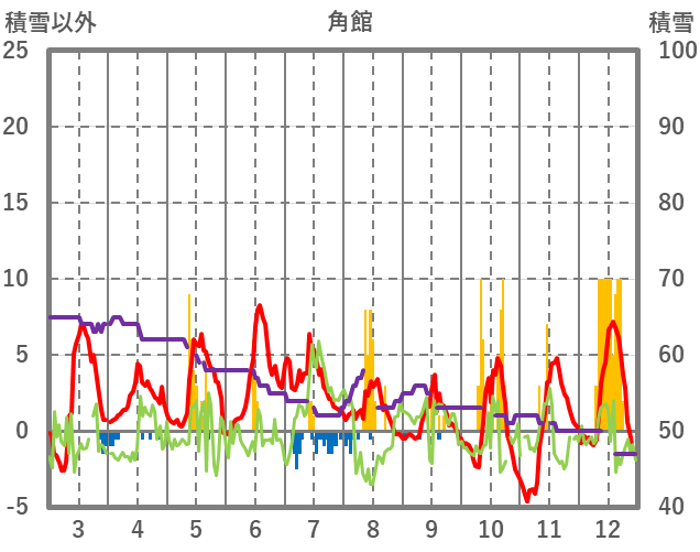 | 日 | 時 | 気温 | 降水 | 風向/風速 | 日照 | 積雪 | 降雪 |