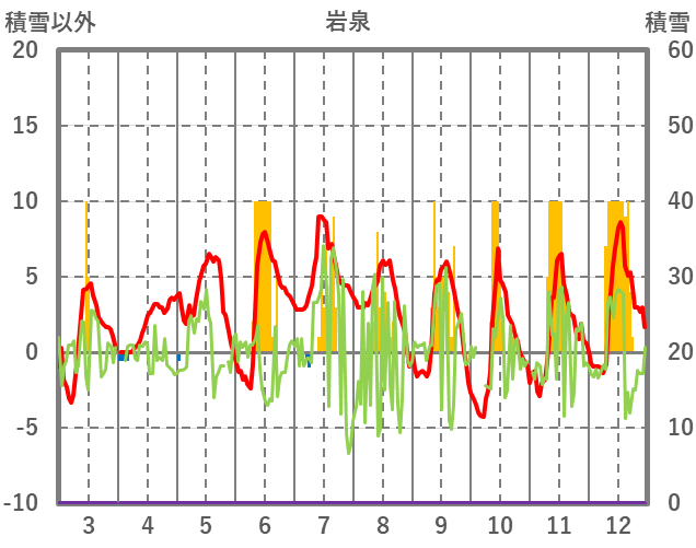 | 日 | 時 | 気温 | 降水 | 風向/風速 | 日照 | 積雪 | 降雪 |