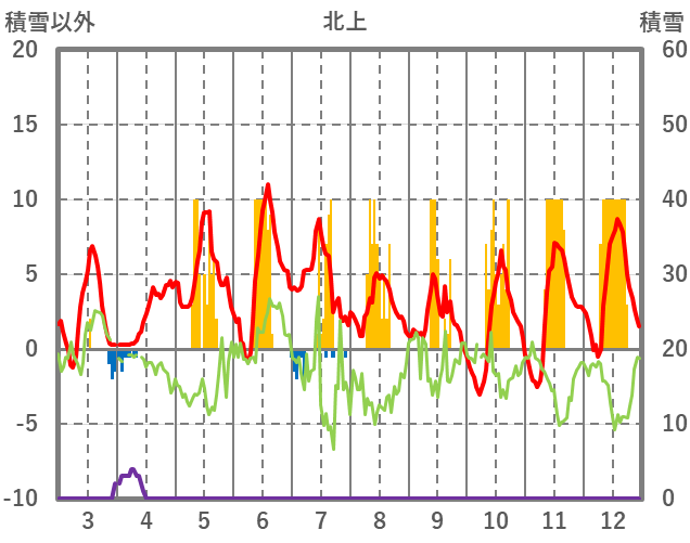 | 日 | 時 | 気温 | 降水 | 風向/風速 | 日照 | 積雪 | 降雪 |