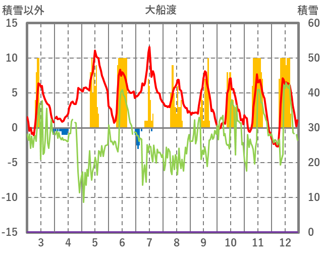 | 日 | 時 | 気温 | 降水 | 風向/風速 | 日照 | 積雪 | 降雪 |