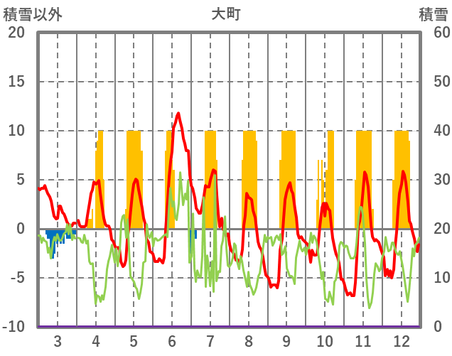 | 日 | 時 | 気温 | 降水 | 風向/風速 | 日照 | 積雪 | 降雪 |