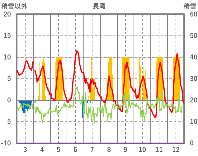 | 日 | 時 | 気温 | 降水 | 風向/風速 | 日照 | 積雪 | 降雪 |
