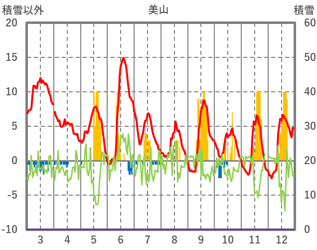 | 日 | 時 | 気温 | 降水 | 風向/風速 | 日照 | 積雪 | 降雪 |