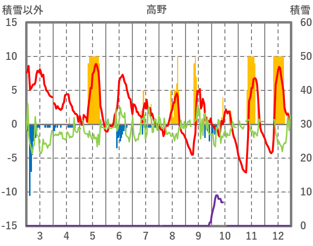 | 日 | 時 | 気温 | 降水 | 風向/風速 | 日照 | 積雪 | 降雪 |
