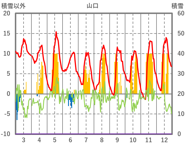 | 日 | 時 | 気温 | 降水 | 風向/風速 | 日照 | 積雪 | 降雪 |