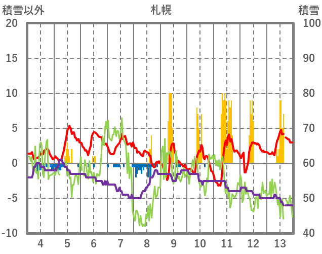 | 日 | 時 | 気温 | 降水 | 風向/風速 | 日照 | 積雪 | 降雪 |