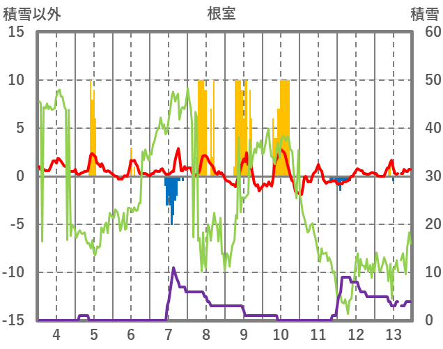 | 日 | 時 | 気温 | 降水 | 風向/風速 | 日照 | 積雪 | 降雪 |