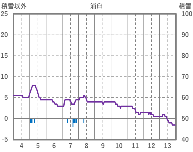| 日 | 時 | 気温 | 降水 | 風向/風速 | 日照 | 積雪 | 降雪 |