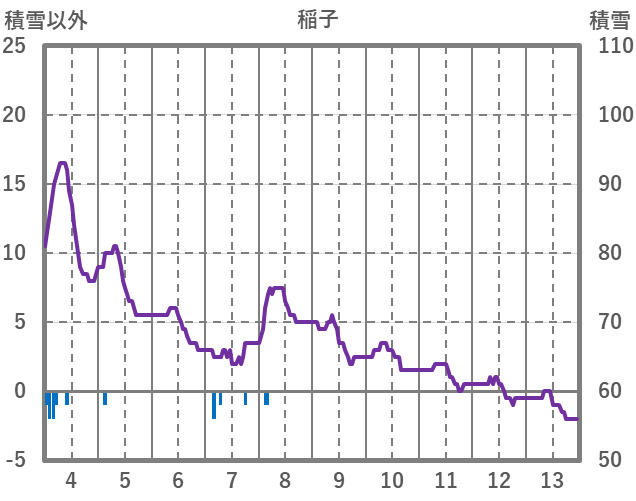 | 日 | 時 | 気温 | 降水 | 風向/風速 | 日照 | 積雪 | 降雪 |