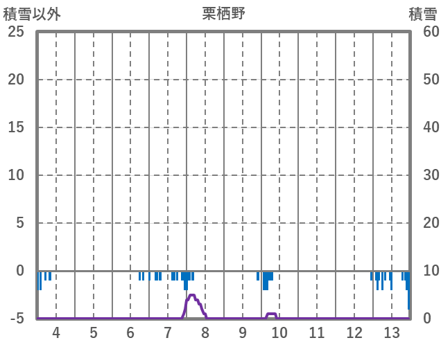 | 日 | 時 | 気温 | 降水 | 風向/風速 | 日照 | 積雪 | 降雪 |