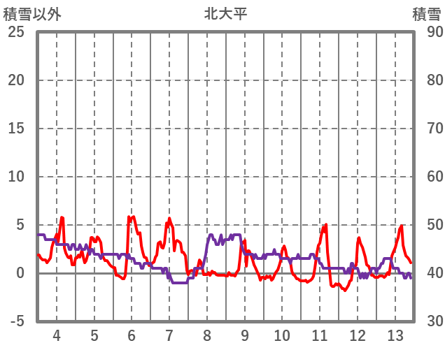 | 日 | 時 | 気温 | 降水 | 風向/風速 | 日照 | 積雪 | 降雪 |