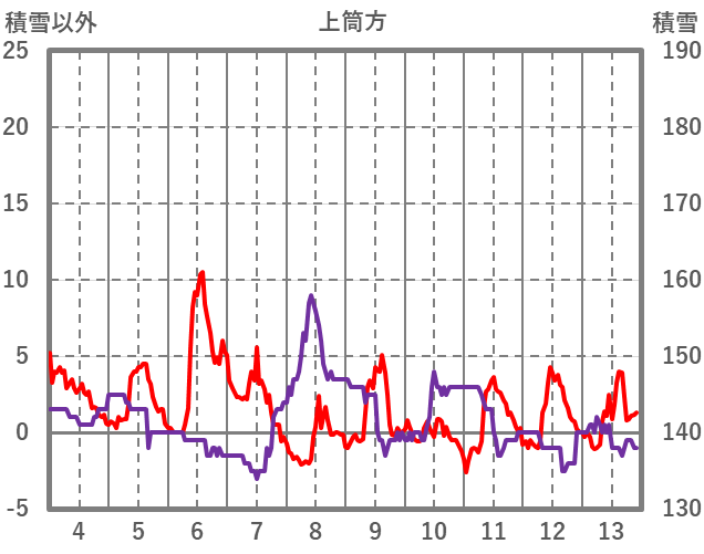 | 日 | 時 | 気温 | 降水 | 風向/風速 | 日照 | 積雪 | 降雪 |