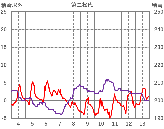 | 日 | 時 | 気温 | 降水 | 風向/風速 | 日照 | 積雪 | 降雪 |