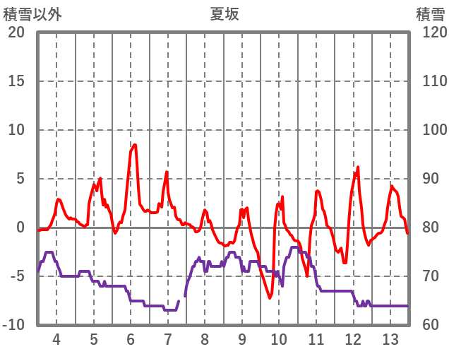 | 日 | 時 | 気温 | 降水 | 風向/風速 | 日照 | 積雪 | 降雪 |