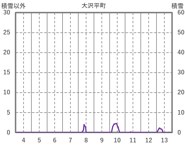 | 日 | 時 | 気温 | 降水 | 風向/風速 | 日照 | 積雪 | 降雪 |