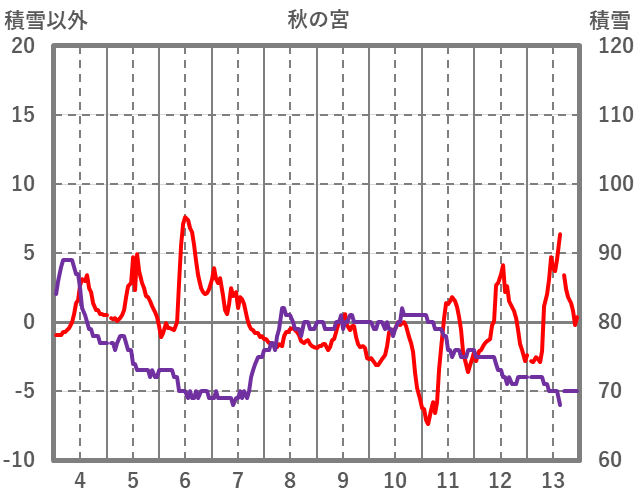 | 日 | 時 | 気温 | 降水 | 風向/風速 | 日照 | 積雪 | 降雪 |