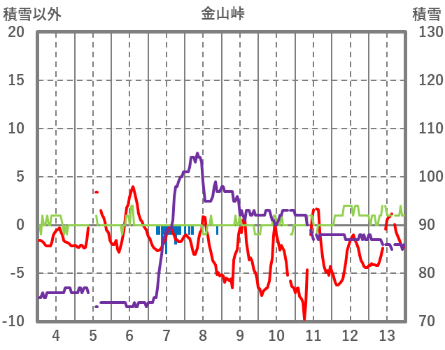 | 日 | 時 | 気温 | 降水 | 風向/風速 | 日照 | 積雪 | 降雪 |