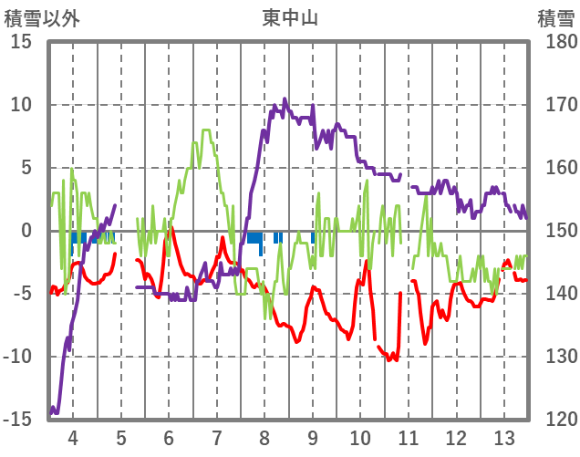 | 日 | 時 | 気温 | 降水 | 風向/風速 | 日照 | 積雪 | 降雪 |