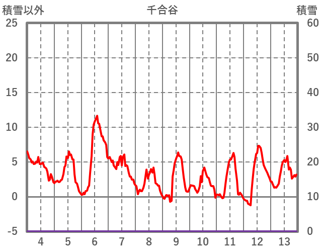 | 日 | 時 | 気温 | 降水 | 風向/風速 | 日照 | 積雪 | 降雪 |