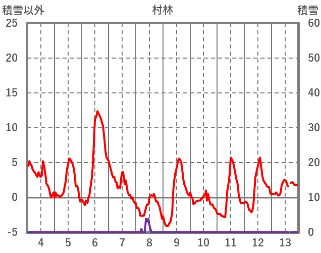 | 日 | 時 | 気温 | 降水 | 風向/風速 | 日照 | 積雪 | 降雪 |