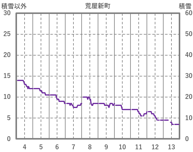 | 日 | 時 | 気温 | 降水 | 風向/風速 | 日照 | 積雪 | 降雪 |