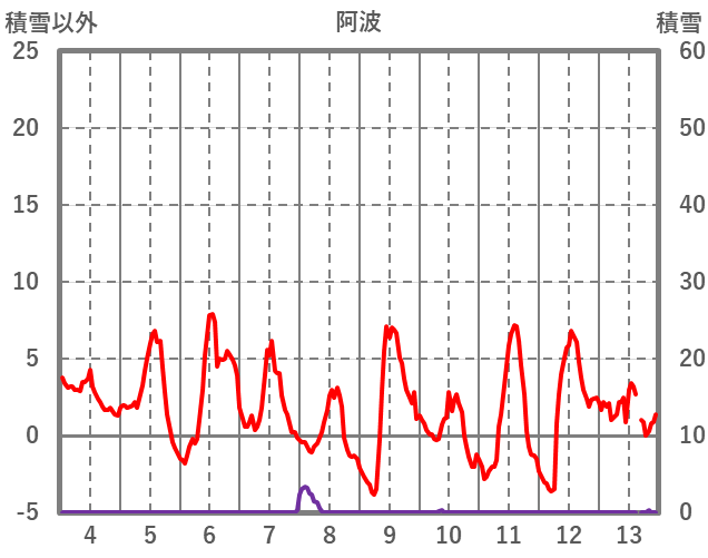 | 日 | 時 | 気温 | 降水 | 風向/風速 | 日照 | 積雪 | 降雪 |