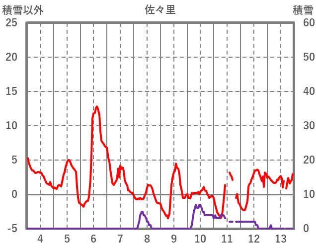 | 日 | 時 | 気温 | 降水 | 風向/風速 | 日照 | 積雪 | 降雪 |
