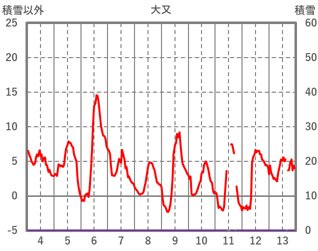 | 日 | 時 | 気温 | 降水 | 風向/風速 | 日照 | 積雪 | 降雪 |