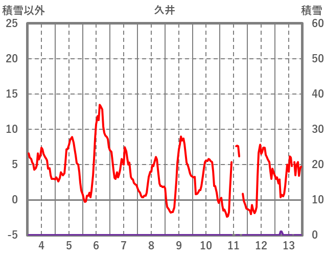 | 日 | 時 | 気温 | 降水 | 風向/風速 | 日照 | 積雪 | 降雪 |