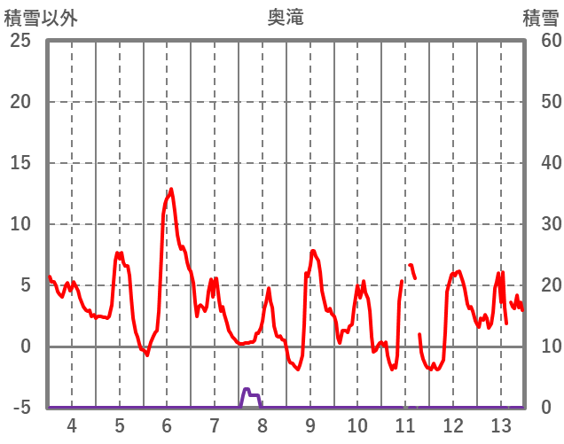 | 日 | 時 | 気温 | 降水 | 風向/風速 | 日照 | 積雪 | 降雪 |