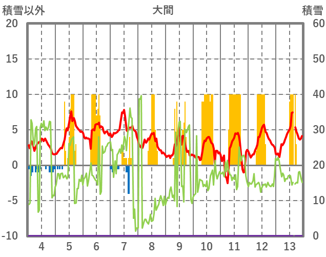 | 日 | 時 | 気温 | 降水 | 風向/風速 | 日照 | 積雪 | 降雪 |