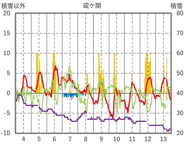| 日 | 時 | 気温 | 降水 | 風向/風速 | 日照 | 積雪 | 降雪 |