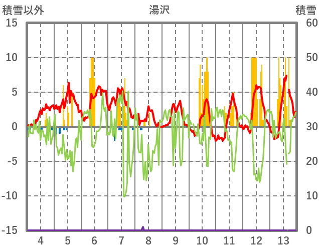 | 日 | 時 | 気温 | 降水 | 風向/風速 | 日照 | 積雪 | 降雪 |