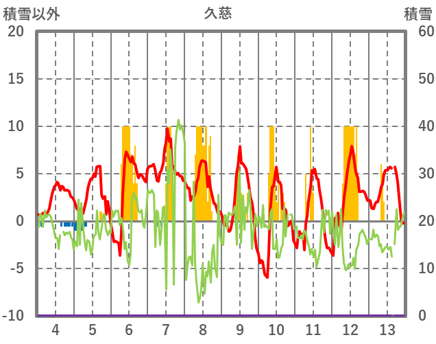 | 日 | 時 | 気温 | 降水 | 風向/風速 | 日照 | 積雪 | 降雪 |