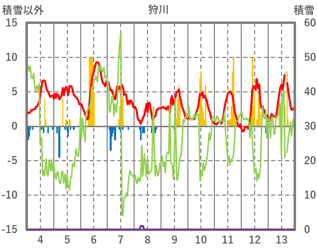 | 日 | 時 | 気温 | 降水 | 風向/風速 | 日照 | 積雪 | 降雪 |