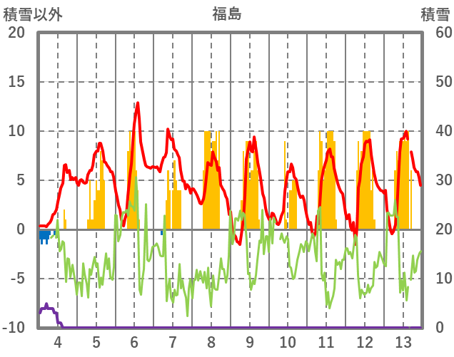 | 日 | 時 | 気温 | 降水 | 風向/風速 | 日照 | 積雪 | 降雪 |