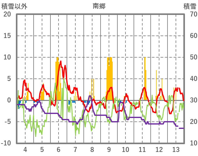 | 日 | 時 | 気温 | 降水 | 風向/風速 | 日照 | 積雪 | 降雪 |