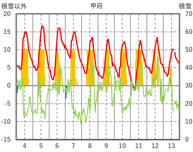 | 日 | 時 | 気温 | 降水 | 風向/風速 | 日照 | 積雪 | 降雪 |