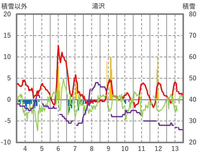 | 日 | 時 | 気温 | 降水 | 風向/風速 | 日照 | 積雪 | 降雪 |