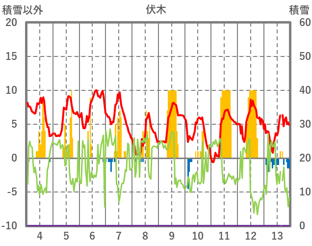 | 日 | 時 | 気温 | 降水 | 風向/風速 | 日照 | 積雪 | 降雪 |