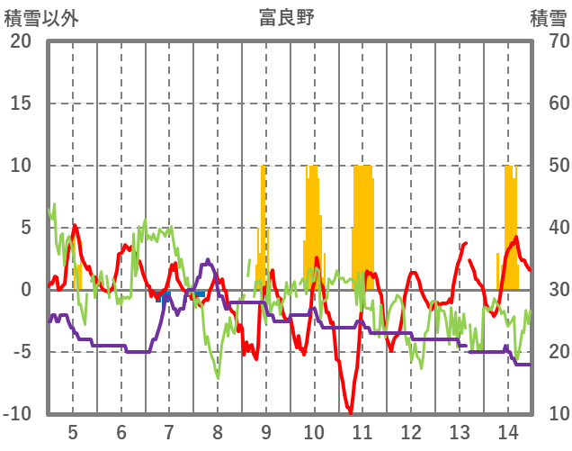 | 日 | 時 | 気温 | 降水 | 風向/風速 | 日照 | 積雪 | 降雪 |