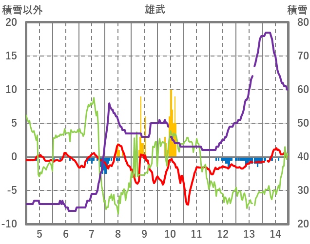 | 日 | 時 | 気温 | 降水 | 風向/風速 | 日照 | 積雪 | 降雪 |