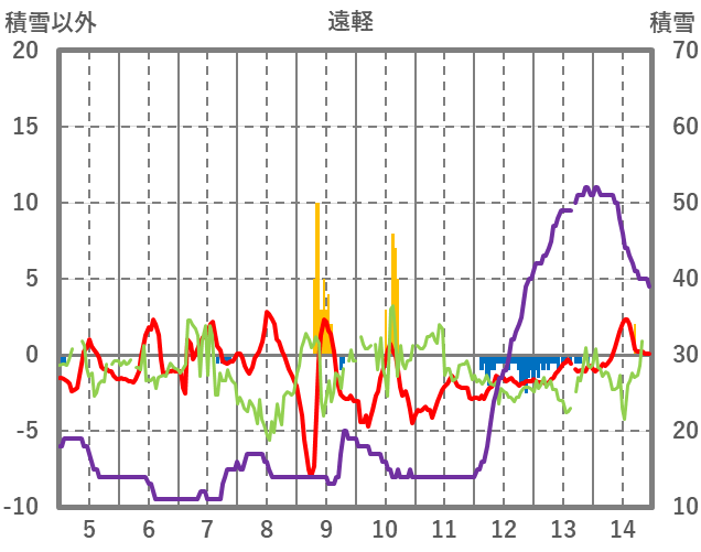 | 日 | 時 | 気温 | 降水 | 風向/風速 | 日照 | 積雪 | 降雪 |