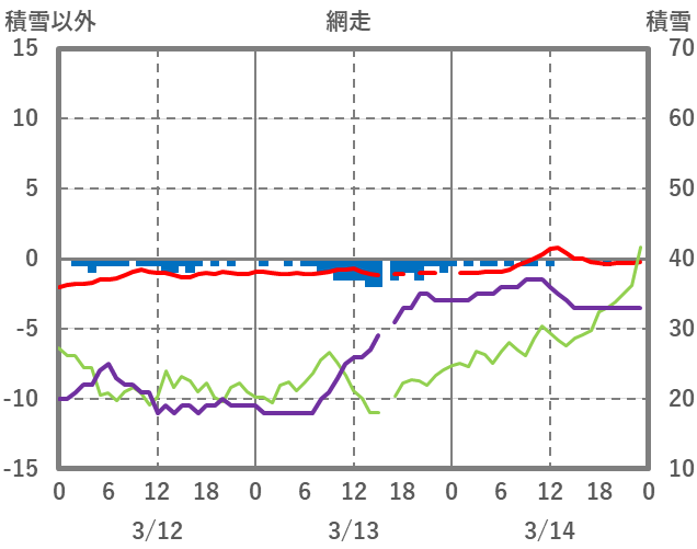 | 日 | 時 | 気温 | 降水 | 風向/風速 | 日照 | 積雪 | 降雪 |