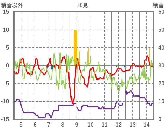| 日 | 時 | 気温 | 降水 | 風向/風速 | 日照 | 積雪 | 降雪 |